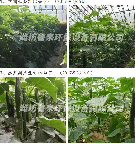 經(jīng)過分析研究,全體與會人員一致認(rèn)為,使用生態(tài)水灌溉的黃瓜有以下四大優(yōu)點:一是外形方面,植株高,葉片厚無斑點,顏色油綠舒展度好,莖粗壯,毛細(xì)根發(fā)達(dá);二是結(jié)果方面,果實大小均勻、畸形果少,上市早盛果期長,產(chǎn)量高、品質(zhì)好;三是土地性能方面,土壤疏松度好,保濕效果明顯,更適合蔬菜生長;四是管理方面,用藥少,安全性相對高。