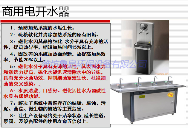 3:磁化水因其晶格細(xì)化,水分子具有充沛的活性,提高熱導(dǎo)率,縮短加熱或冷卻時(shí)間20%以上。