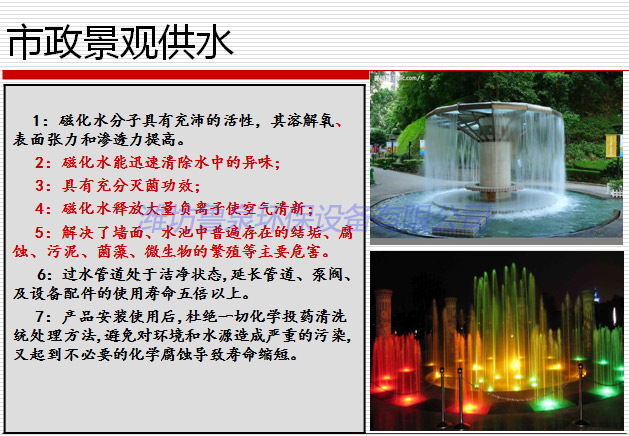 節(jié)能環(huán)保、性能穩(wěn)定,價(jià)格低廉、效果顯著,安裝方便、不占空間,無(wú)需任何能源和動(dòng)力、高等級(jí)防爆磁屏蔽,全自動(dòng)控制伺服無(wú)維護(hù),目前國(guó)際國(guó)內(nèi)比較成功的無(wú)污染防垢、除垢技術(shù)。