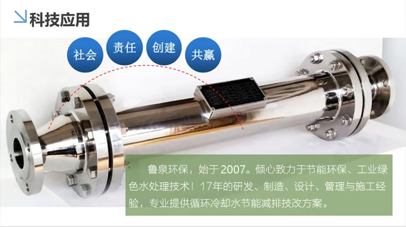 水分子有較強(qiáng)的極性。具有一定電導(dǎo)率的水或溶液以一定的速度垂直磁力線(xiàn)通過(guò)強(qiáng)磁場(chǎng)時(shí),可以引起電子激發(fā),影響所析出沉淀的離子鍵,使所生成的沉淀強(qiáng)度降低,不再形成堅(jiān)硬有序的結(jié)晶,而是像雪花那樣堆積,由于它和器壁的結(jié)合力弱,可不粘附受熱設(shè)備表面而隨水流沖走。同時(shí)由于水分子偶極距增大,使其與鹽類(lèi)正負(fù)離子吸引力增大,使受熱設(shè)備、管壁上原有的舊垢逐漸龜裂,疏松軟化,自行脫落,達(dá)到防垢除垢目的。水垢一旦清除,不再結(jié)新垢。讓生產(chǎn)設(shè)備最終處于潔凈狀態(tài),達(dá)到環(huán)保、節(jié)能效果。
